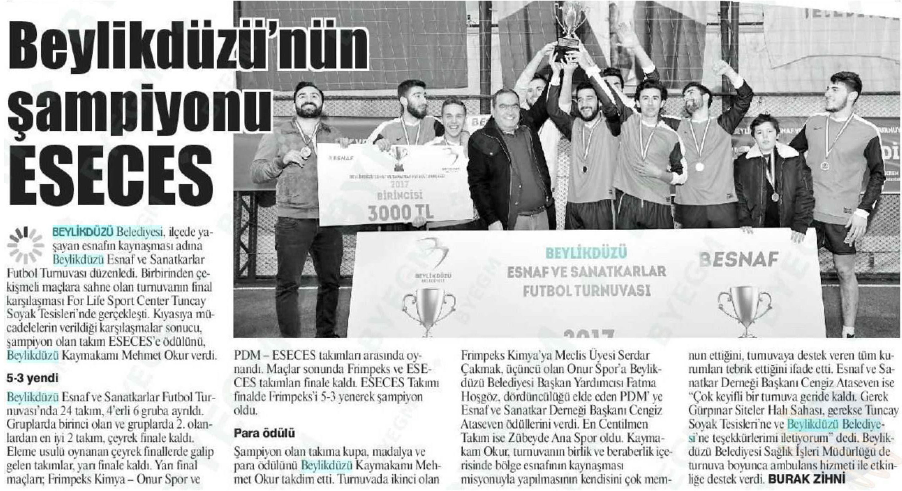 13 Aralık 2017 tarihli "DAMGA" gazetesi. Beylikdüzü Belediyesi, ilçede yaşayan esnafın kaynaşması adına Beylikdüzü Esnaf ve Sanatkarlar Futbol Turnuvası düzenledi.
