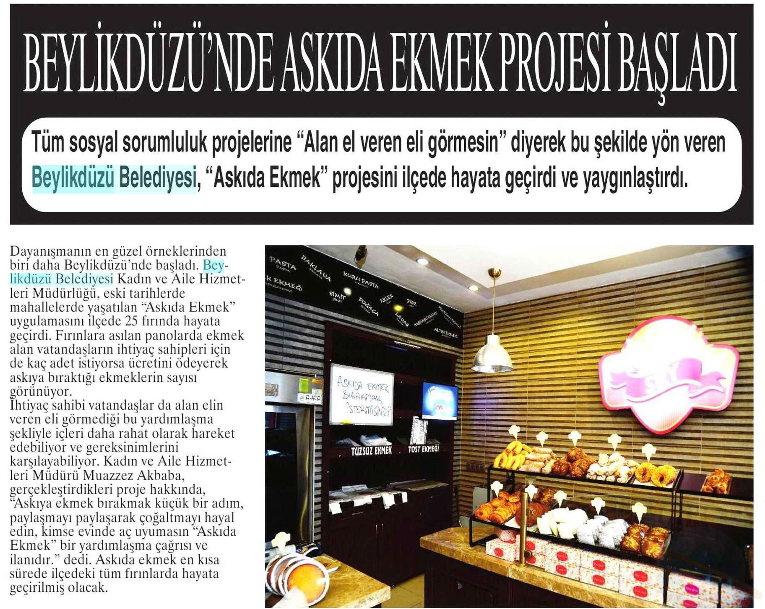 15 Aralık 2017 tarihli " NABIZ" gazetesi. Tüm sosyal projelerine "Alan el veren eli görmesin" diyerek bu şekilde yön veren Beylikdüzü Belediyesi, "Askıda Ekmek" projesini ilçede hayata geçirdi ve yaygınlaştırdı.