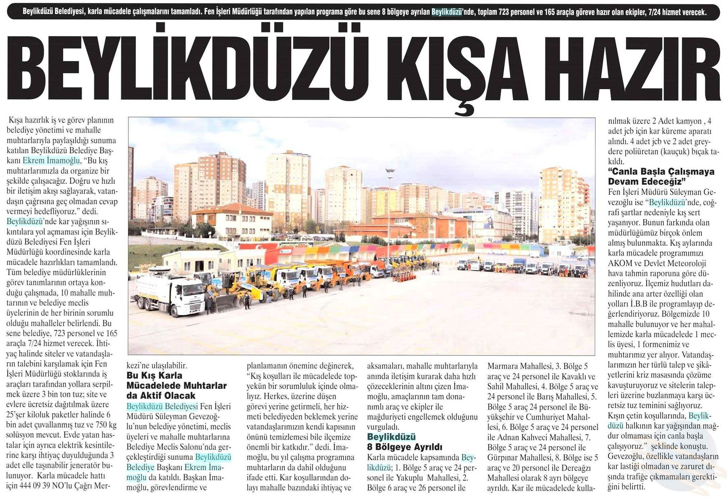 3 Ocak 2018 tarihli "BÜYÜKÇEKMECE" gazetesi. Beylikdüzü'nde kar yağışının sıkıntılara yol açmaması için Beylikdüzü Belediyesi Fen İşleri Müdürlüğü koordinesinde karla mücadele hazırlıkları tamamlandı.