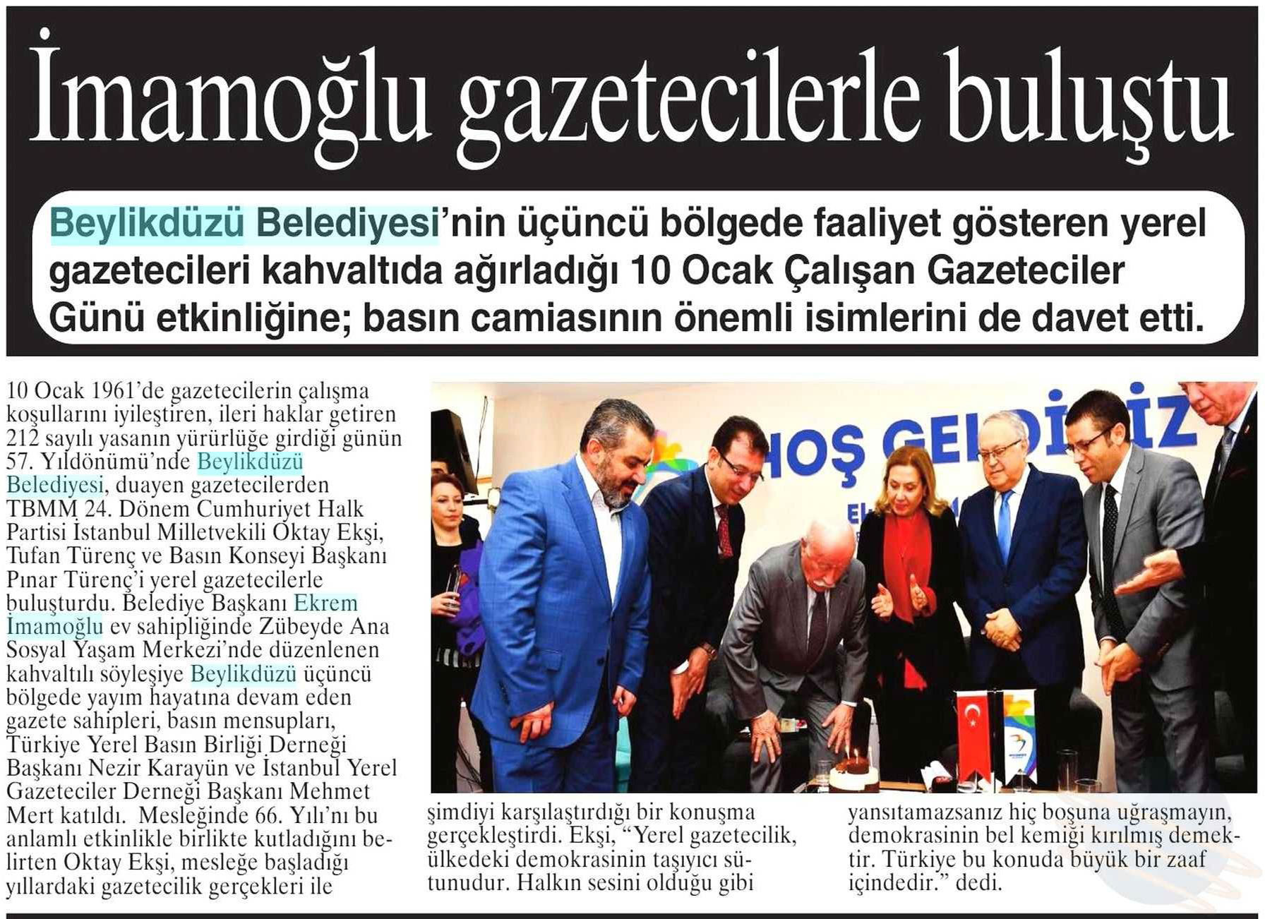 9 Ocak 2018 tarihli "NABIZ" gazetesi. Beylikdüzü Belediyesi'nin üçüncü bölgede faaliyet gösteren yerel gazetecileri kahvaltıda ağırladığı 10 Ocak Çalışan Gazeteciler Günü etkinliğine; basın camiasının önemli isimlerini de davet etti.