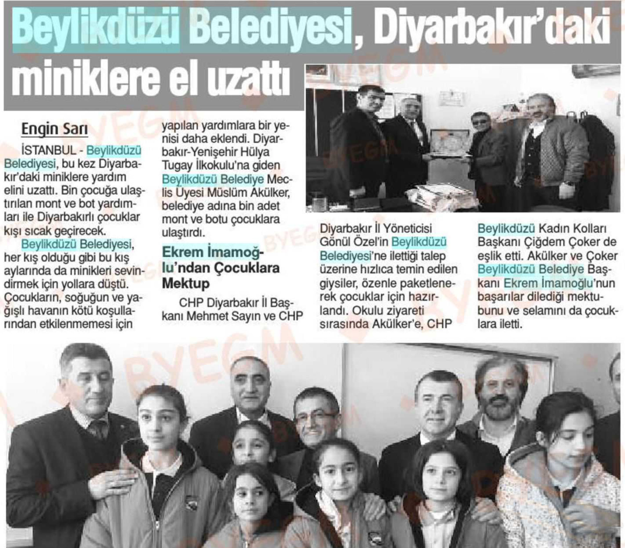 15 Ocak 2018 tarihli " YENİ ÇAĞRI" gazetesi. Beylikdüzü Belediyesi, her kış olduğu gibi bu kış aylarında da minikleri sevindirmek için yollara düştü.