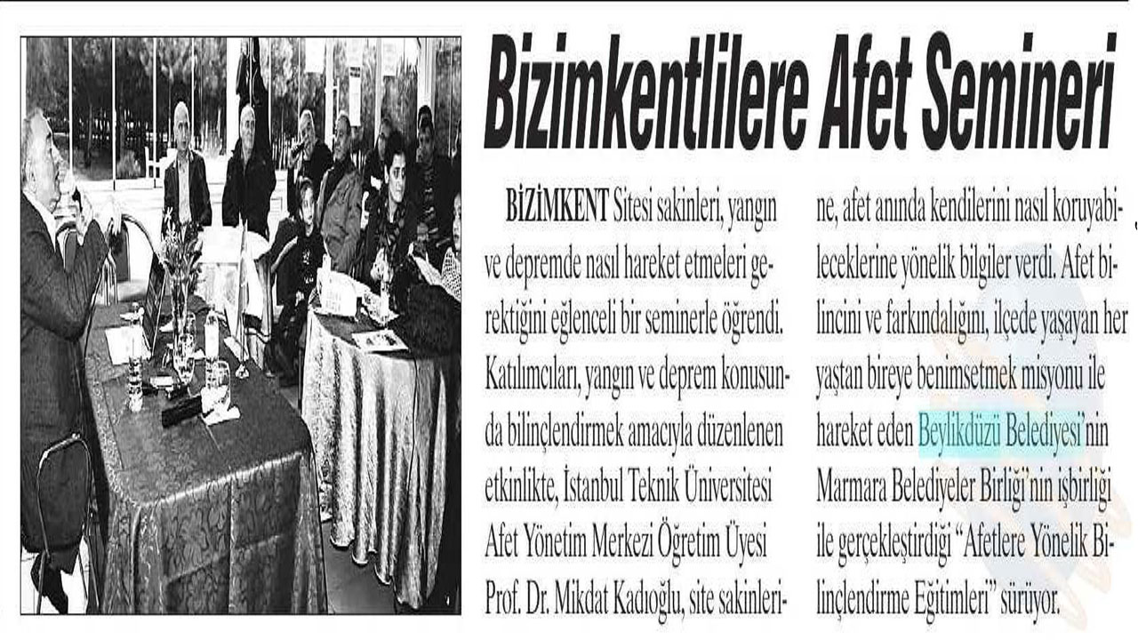 25 Ocak 2018 tarihli "DOKUZ SÜTUN" gazetesi. Beylikdüzü Belediyesi'nin Marmara Belediyeler Birliği işbirliği ile gerçekleştirilen "Afetlere Yönelik Bilinçlendirme Eğitimleri" sürüyor. Bizimkent Sitesi Sakinleri, yangın ve depremde nasıl hareket etmeleri gerektiğini eğlenceli bir seminerle öğrendi.