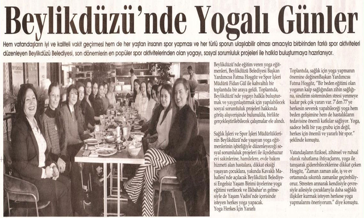 20 Şubat 2018 tarihli "İKTİDAR" gazetesi. Hem vatandaşların iyi ve kaliteli vakit geçirmesi hem de her yaştan insanın spor yapması ve her türlü sporun ulaşılabilir olması amacıyla biribirinden farklı spor aktiviteleri düzenleyen Beylikdüzü Belediyesi, son dönemlerin en popüler spor aktivitelerinden olan yogayı, sosyal sorumluluk projeleri ile halkla buluşturmaya hazırlanıyor.