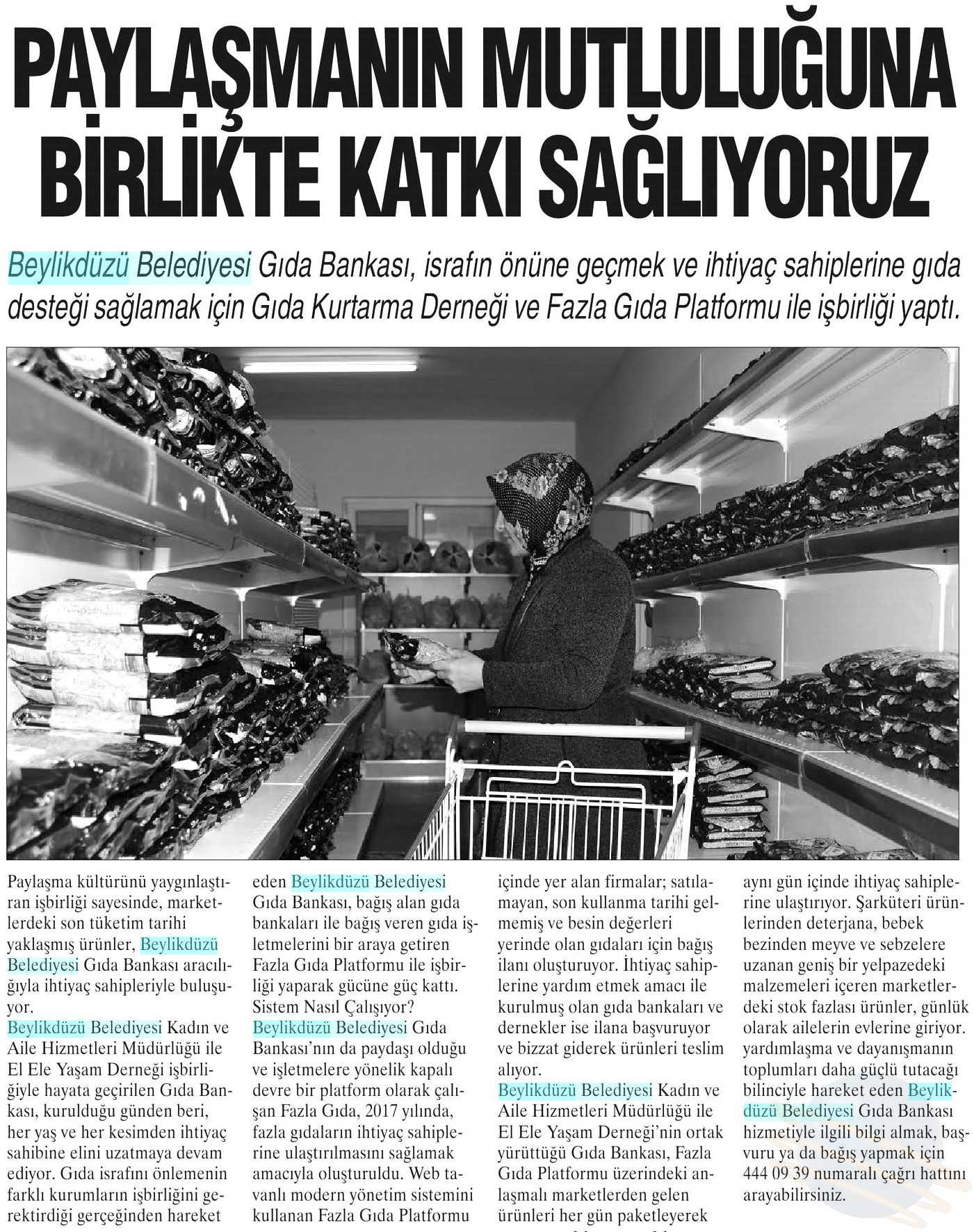 13 Mart 2018 tarihli "BÜYÜKÇEKMECE" gazetesi. Beylikdüzü Belediyesi Gıda Bankası, israfın önüne geçmek ve ihtiyaç sahiplerine gıda desteği sağlamak için Gıda Kurtarma Derneği ve Fazla Gıda Platformu ile işbirliği yaptı.
