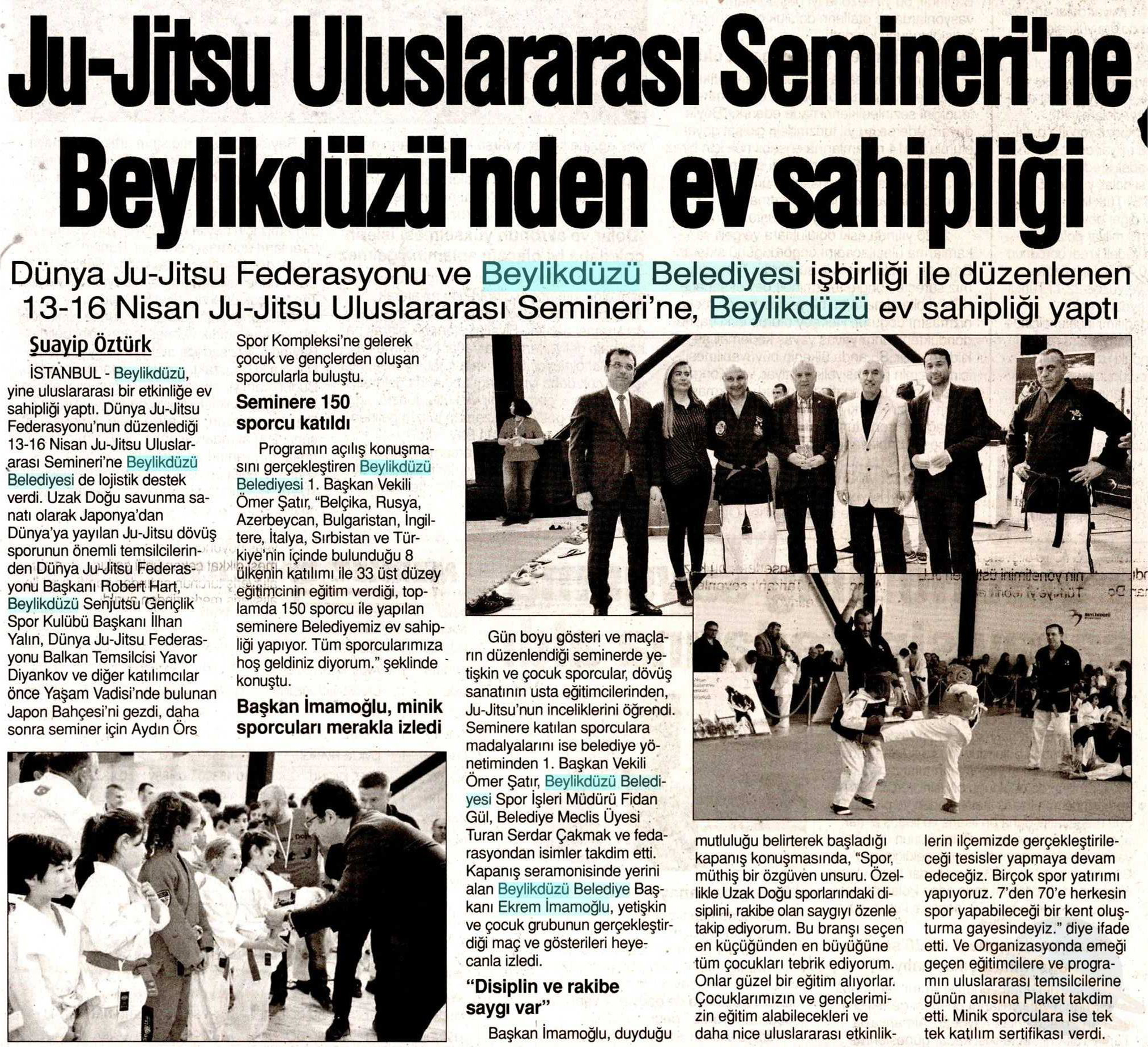 17 Nisan 2018 tarihli "YENİ ÇAĞRI" gazetesi. Dünya Ju-Jitsu Federasyonu ve Beylikdüzü Belediyesi işbirliği ile düzenlenen 13-16 Nisan Ju-jitsu Uluslararası Semineri'ne, Beylikdüzü ev sahipliği yaptı.