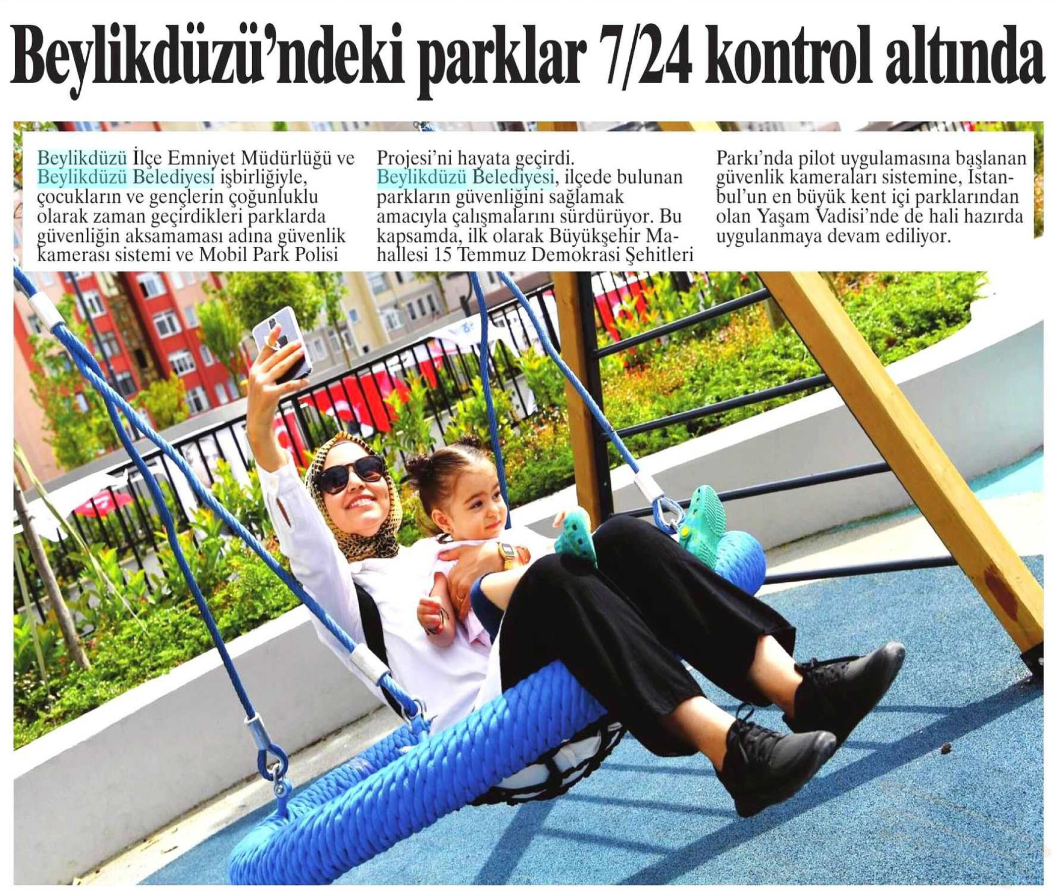 17 Temmuz 2018 tarihli "NABIZ" gazetesi. Beylikdüzü İlçe Emniyet Müdürlüğü ve Beylikdüzü Belediyesi işbirliğiyle, çocukların ve gençlerin çoğunluklu olarak zaman geçirdikleri parklarda güvenliğin aksamaması adına güvenlik kamerası sistemi ve Mobil Park Polisi Projesi'ni hayata geçirdi.