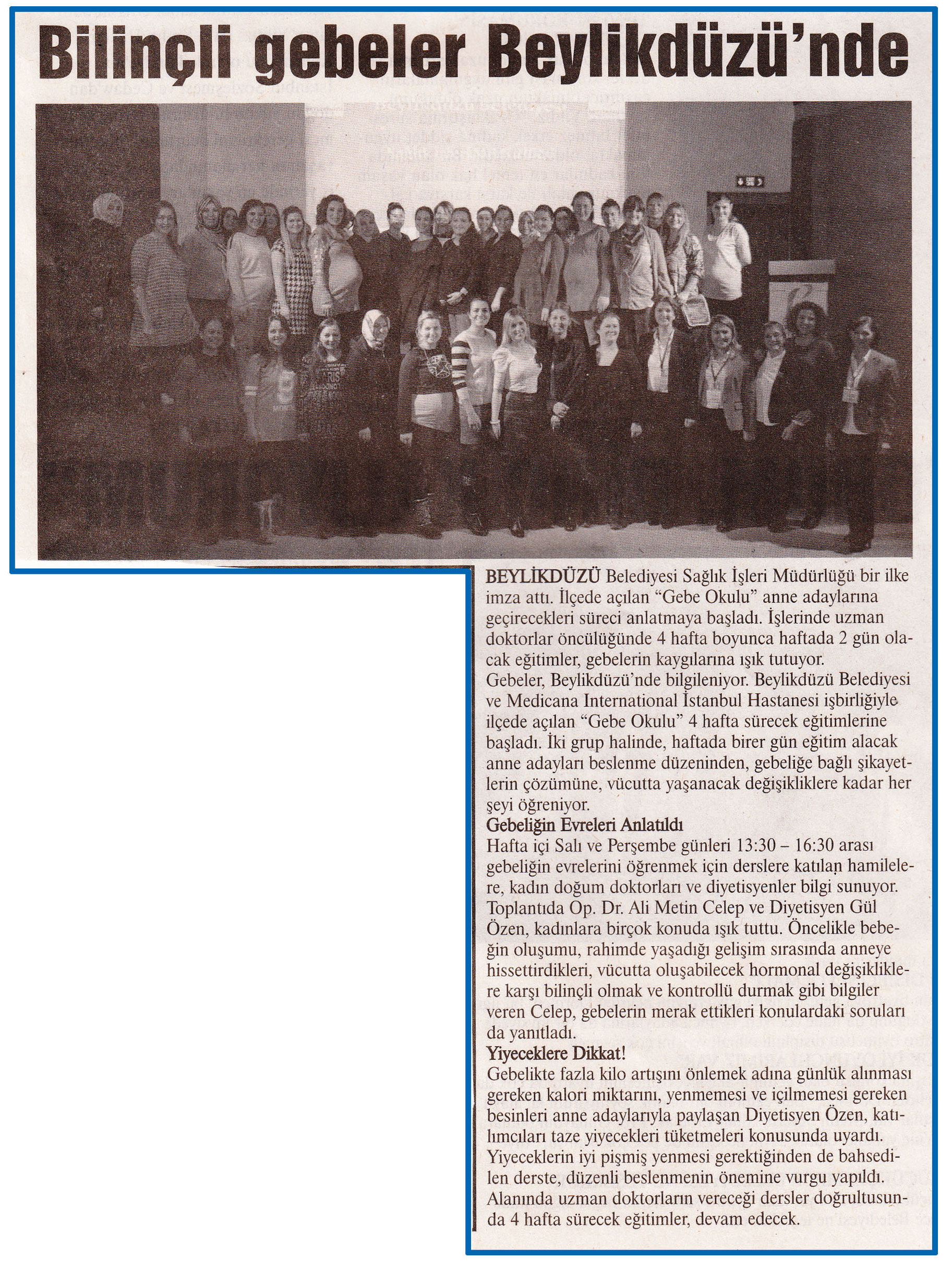 9 Şubat 2015 tarihli ''MARMARA'' gazetesi. Beylikdüzü Belediyesi Sağlık İşleri Müdürlüğü bir ilke imza attı. İlçede açılan ''Gebe Okulu'' anne adaylarına geçirecekleri süreci anlatmaya başladı.