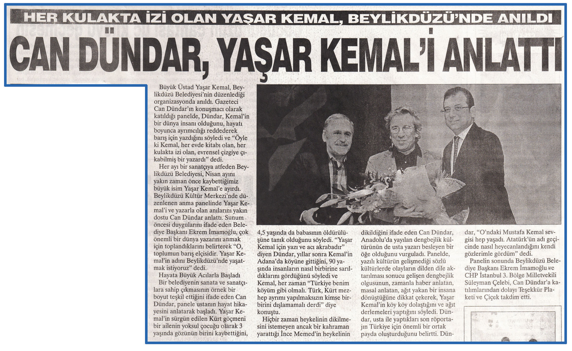 20 Nisan 2015 tarihli ''BÜYÜKÇEKMECE'' gazetesi. Her kulakta izi olan Yaşar Kemal,Beylikdüzü'nde anıldı...