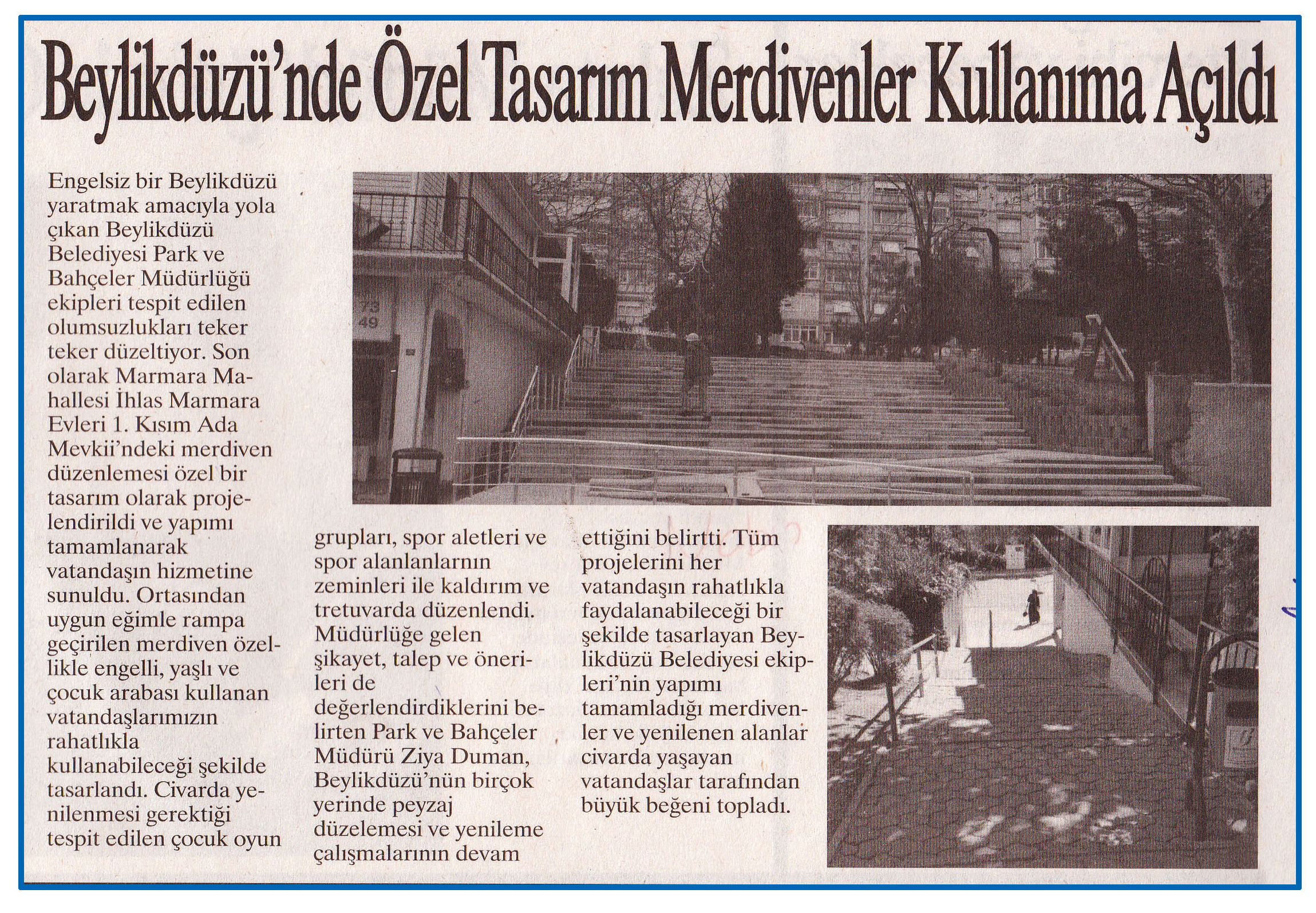 23 Aralık 2015 tarihli "NABIZ" gazetesi. Engelsiz bir Beylikdüzü yaratmak amacıyla yola çıkan Beylikdüzü Belediyesi Park ve Bahçeler Müdürlüğü ekipleri tespit edilen olumsuzlukları teker teker düzeltiyor.