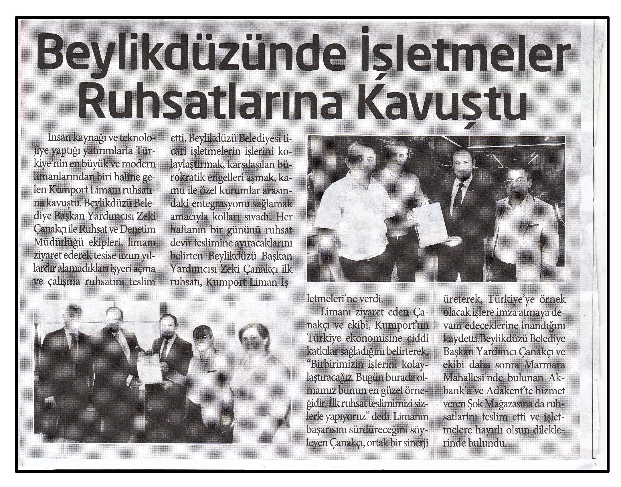 2 Temmuz 2014 tarihli "YEREL MEDYA" gazetesi. İnsan kaynağı ve teknolojiye yaptığı yatırımlarla Türkiye'nini en büyük ve modern limanlarından biri haline gelen Kumport Limanı ruhsatına kavuştu.