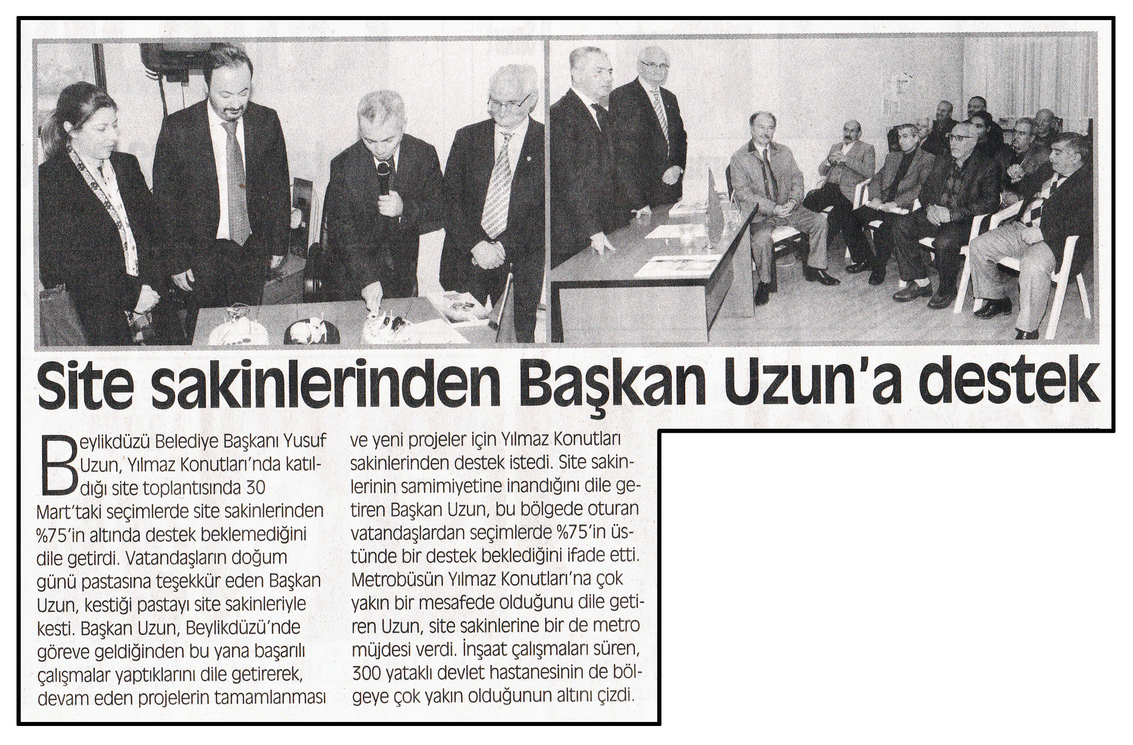 24 Şubat 2014 tarihli ''DEĞİŞİM'' gazetesi. Beylikdüzü Belediye Başkanı Yusuf Uzun, Yılmaz Konutları'nda katıldığı site toplantısında 30 Mart'taki seçimlerde site sakinlerinden %75'in altında destek beklemediğini dile getirdi.