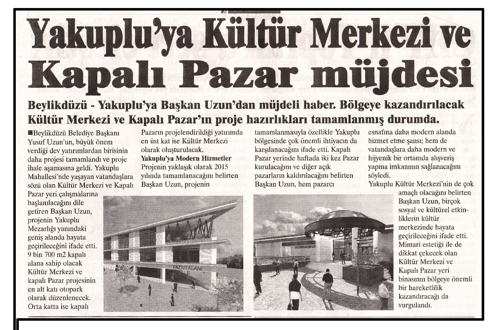3 Mart 2014 tarihli ''ANAHTAR'' gazetesi. Beylikdüzü - Yakuplu'ya Başkan Uzun'dan müjdeli haber. Bölgeye kazandırılacak Kültür Merkezi ve Kapalı Pazar'ın proje hazırlıkları tamamlanmış durumda.
