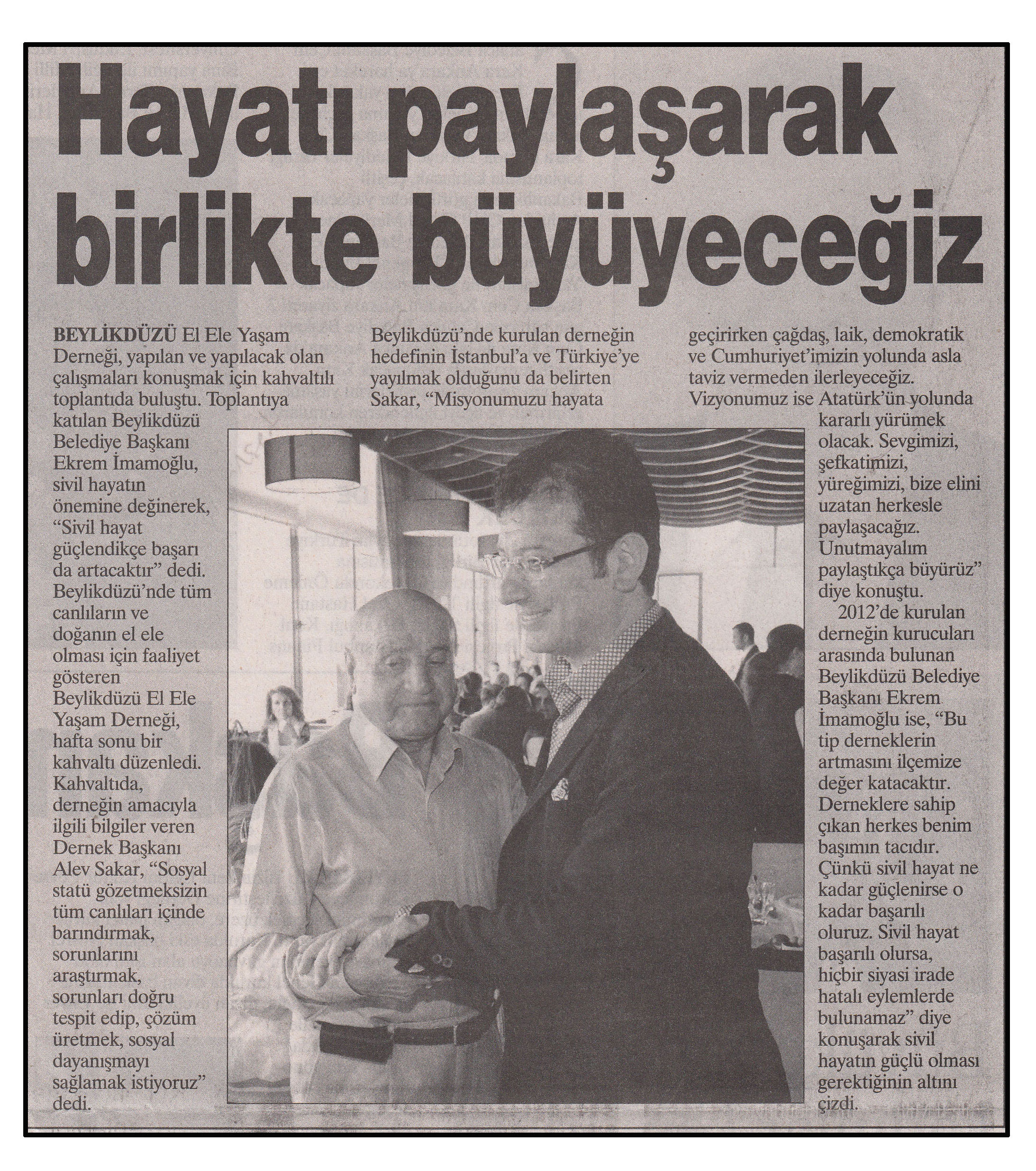 4 Haziran 2014 tarihli "MANŞET" gazetesi. Beylikdüzü El Ele Yaşam Derneği, yapılan ve yapılacak olan çalışmaları konuşmak için kahvaltılı toplantıda buluştu.