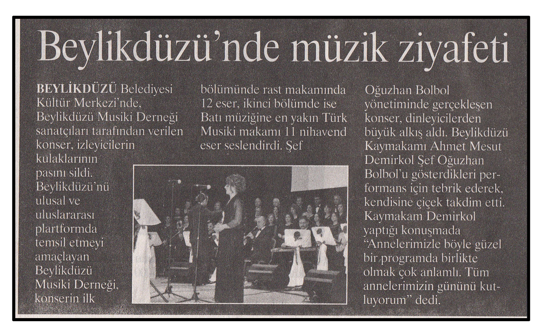 14 Mayıs 2014 tarihli "MANŞET" gazetesi. Beylikdüzü Belediyesi Kültür Merkezi'nde, Beylikdüzü Musiki Derneği sanatçıları tarafından verilen konser, izleyicilerin kulaklarının pasını sildi.