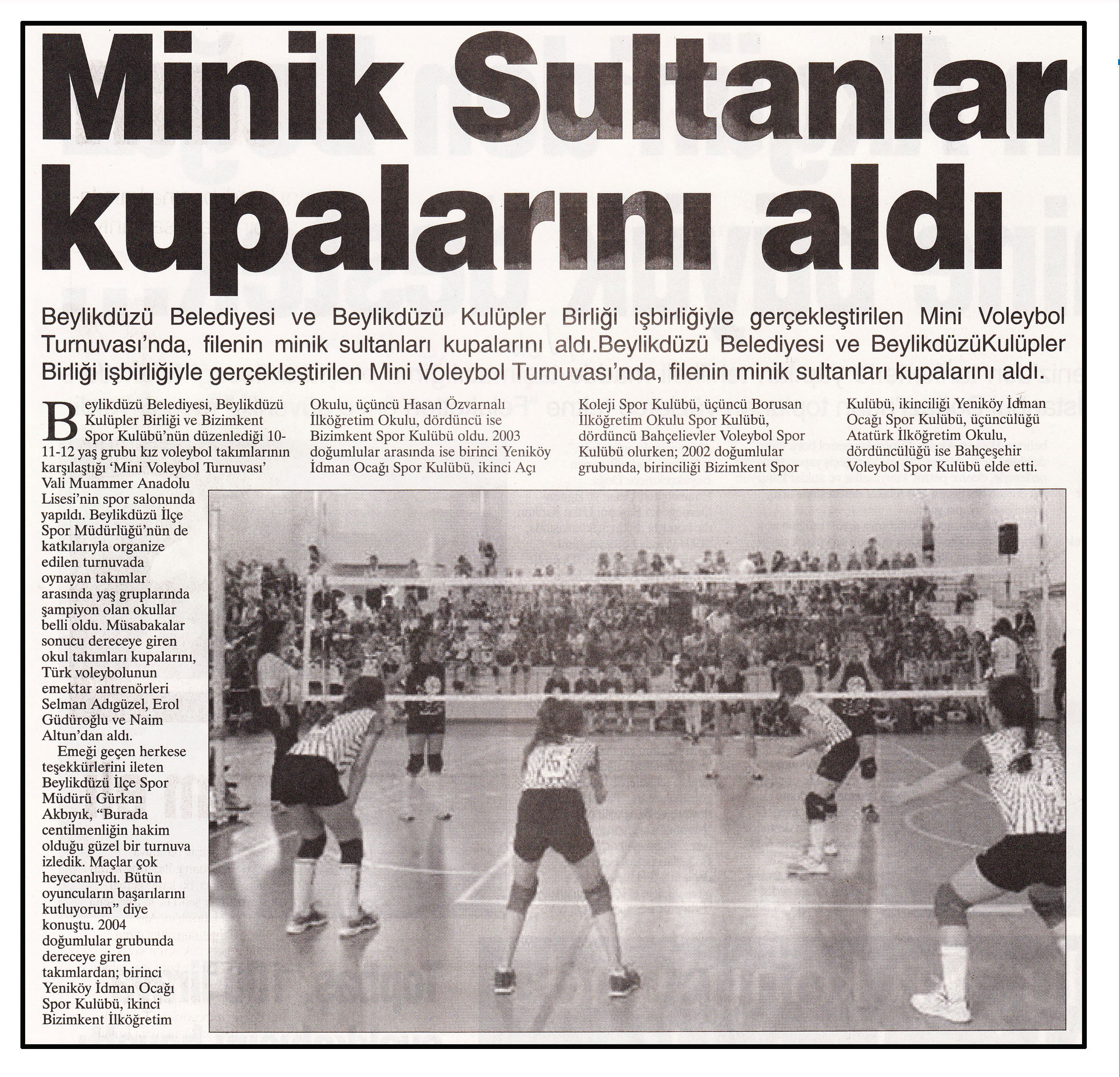 10 Haziran 2014 tarihli "NABIZ" gazetesi.Beylikdüzü Belediyesi ve Beylikdüzü Kulüpler Birliği işbirliğiyle gerçekleştirilen Mini Voleybol Turnuvası'nda filenin minik sultanları kupalarını aldı.