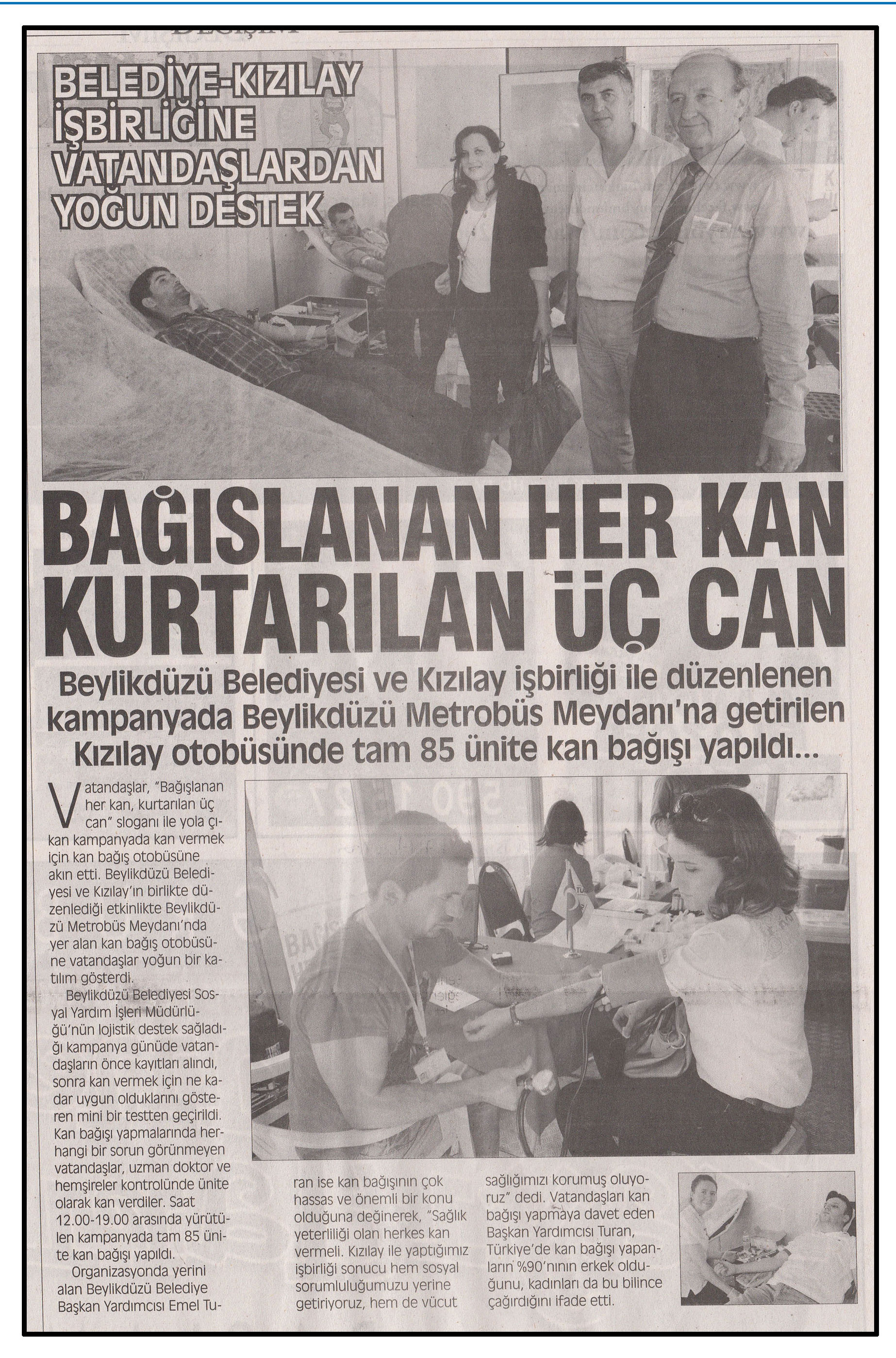 17 Haziran 2014 tarihli "DEĞİŞİM" gazetesi. Beylikdüzü Belediyesi ve Kızılay işbirliği ile düzenlenene kampanyada Beylikdüzü Metrobüs Meydanı'na getirilen Kızılay otobüsünde tam 85 ünite kan bağışı yapıldı.