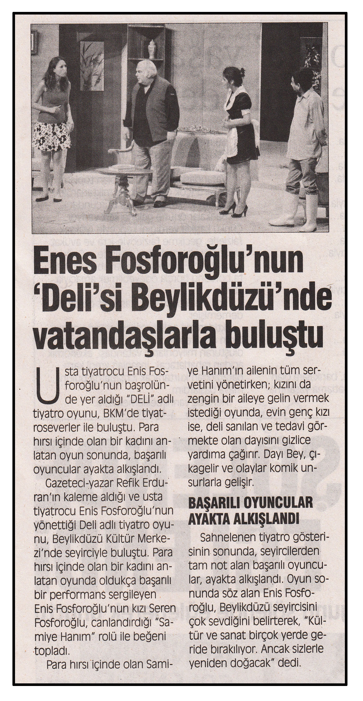 17 Haziran 2014 tarihli "DEĞİŞİM" gazetesi. Usta tiyatrocu Enis Fosforoğlu'nun başrolünde yer aldığı "DELİ" adlı tiyatro oyunu, BKM'de tiyatro severler ile buluştu.