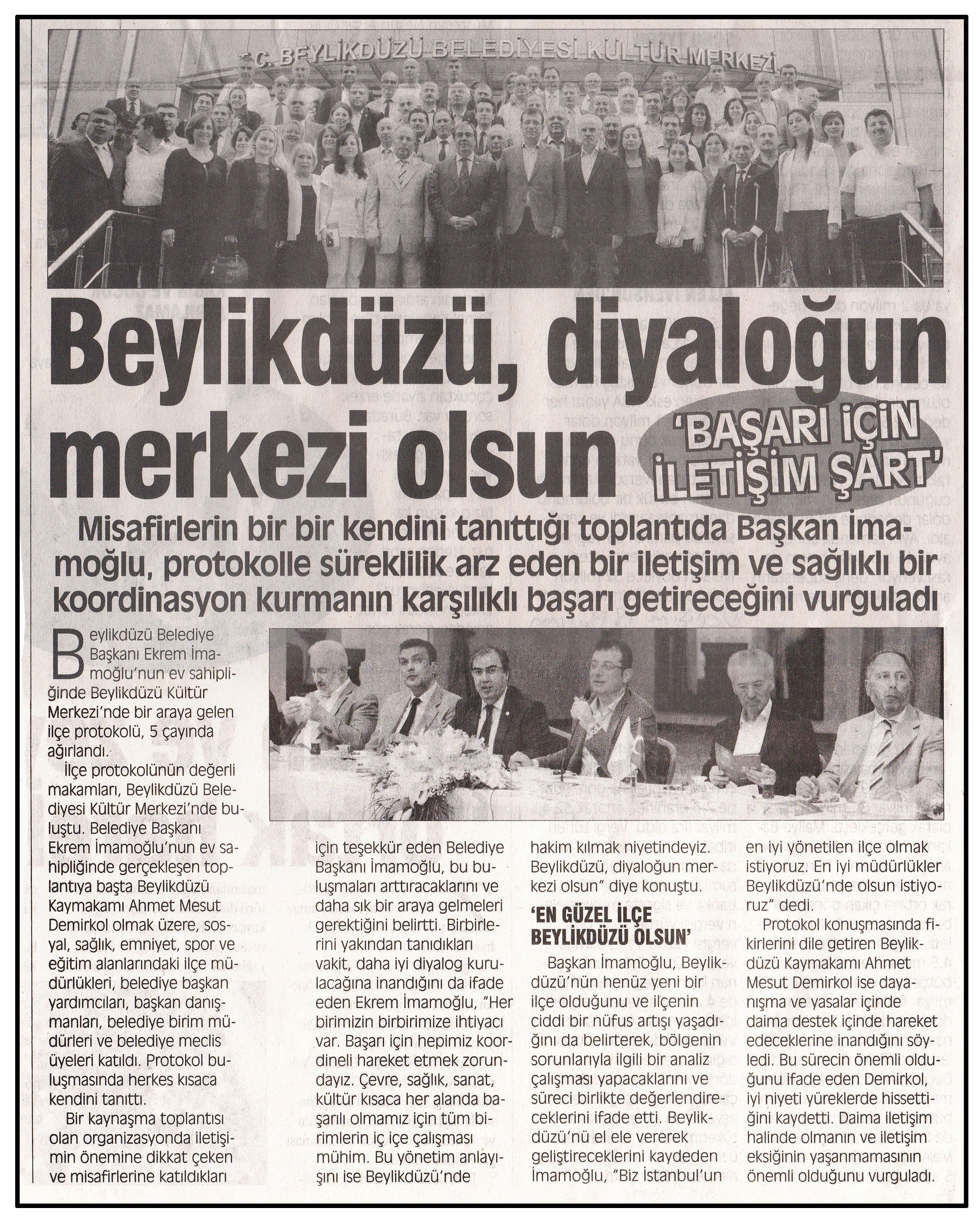 18 Haziran 2014 tarihli "DEĞİŞİM" gazetesi. Misafirlerin bir bir kendini tanıttığı toplantıda Başkan İmamoğlu, protokolle süreklilik arz eden bir iletişim ve sağlıklı bir koordinasyon kurmanın karşılıklı başarı getireceğini vurguladı.