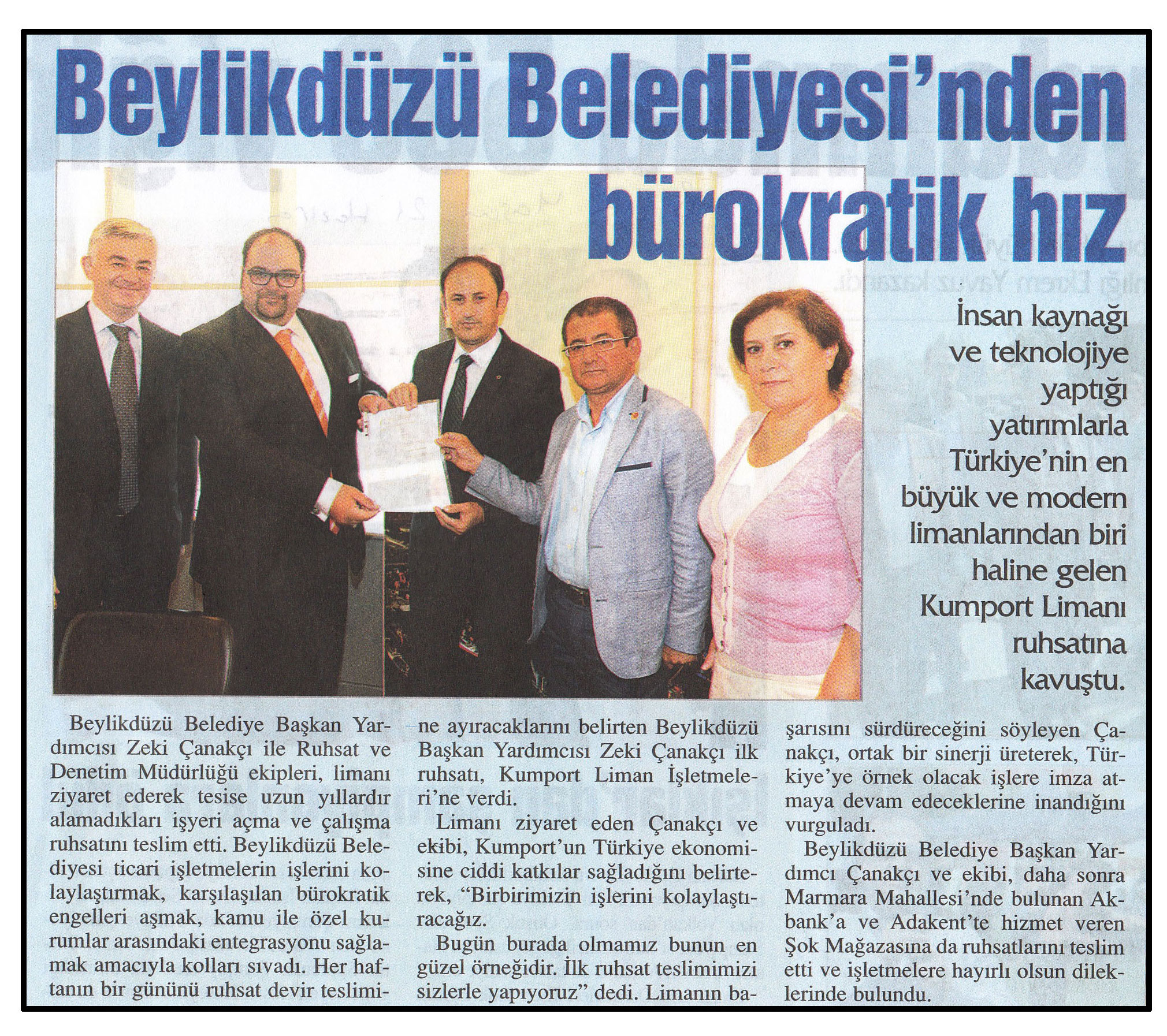 24 Haziran 2014 tarihli "BİZİMYAŞAM" gazetesi. İnsan kaynağı ve teknolojiye yaptığı yatırımlarla Türkiye'nin en büyük ve modern limanlarından biri haline gelen Kumport Limanı ruhsatına kavuştu.