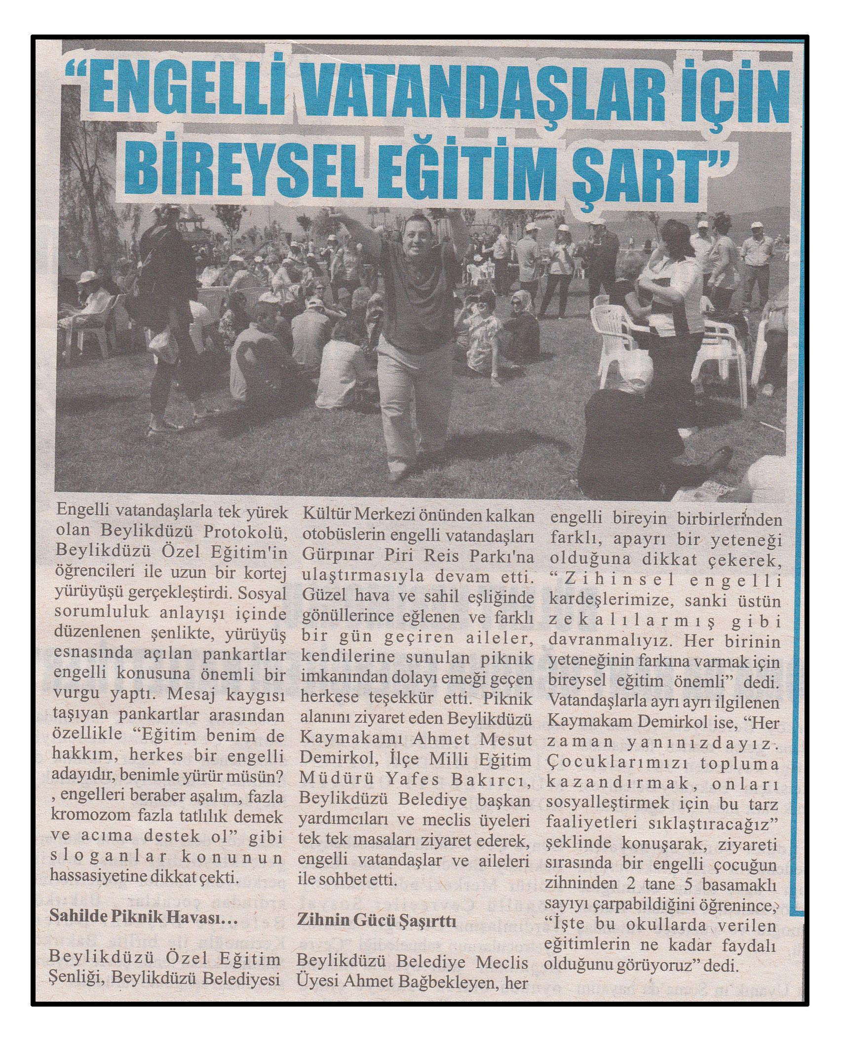 24 Haziran 2014 tarihli "KIRMIZI BÜLTEN" gazetesi. Engelli vatandaşlarla tek yürek olan Beylikdüzü Protokolü, Beylikdüzü Özel Eğitim'in öğrencileri ile uzun bir kortej yürüyüşü gerçekleştirdi.