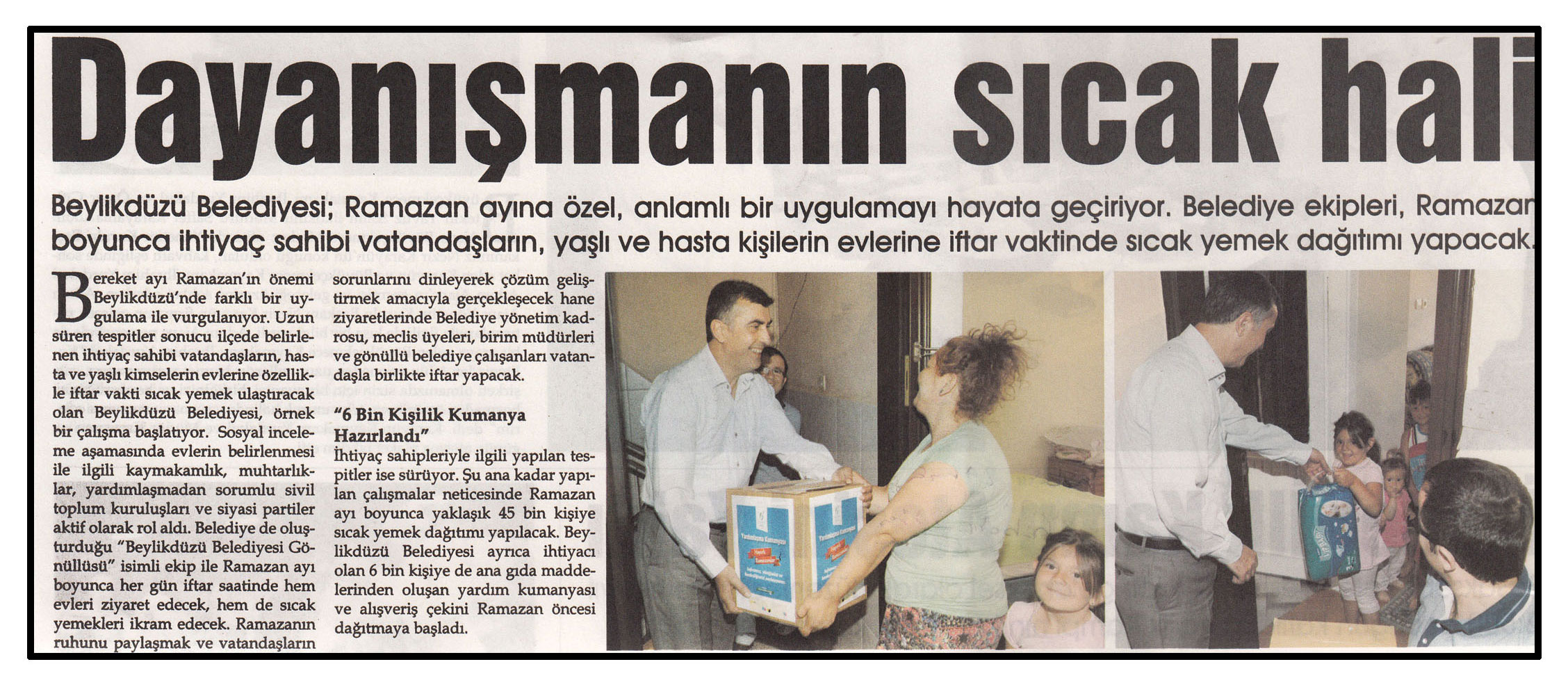 Beylikdüzü Belediyesi; Ramazan ayına özel, anlamlı bir uygulamayı hayata geçiriyor. Belediye ekipleri, Ramazan boyunca ihtiyaç sahibi vatandaşların, yaşlı ve hasta kişilerin evlerine iftar vaktinde sıcak yemek dağıtımı yapacak.