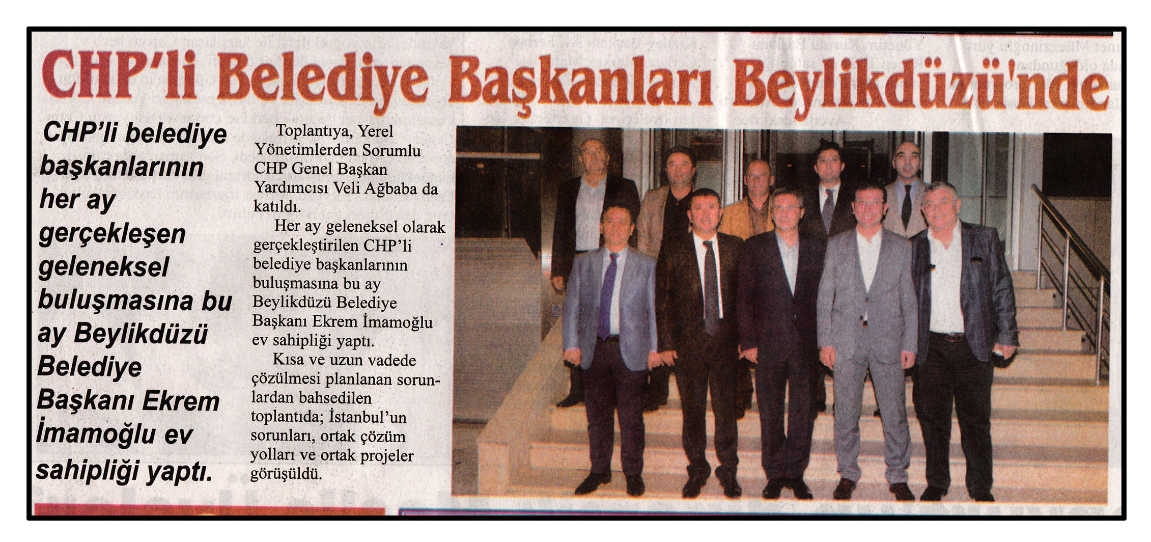 18 Ağustos 2014 tarihli ''GAZETE AVCILAR'' gazetesi. CHP'li belediye başkanlarının her ay gerçekleşen geleneksel buluşmasına bu ay Beylikdüzü Belediye Başkanı Ekrem İmamoğlu ev sahipliği yaptı.