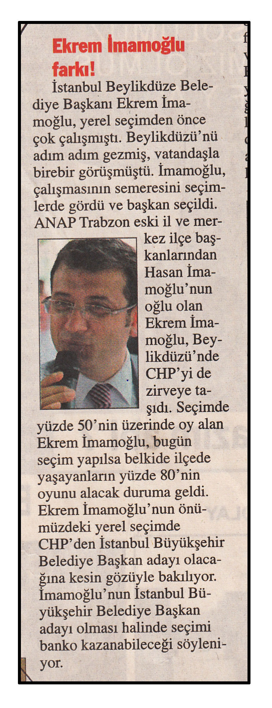 21 Ağustos 2014 tarihli ''KUZEY EKSPRESS'' gazetesi. İstanbul Beylikdüzü Belediye Başkanı Ekrem İmamoğlu, yerel seçimden önce çok çalışmıştı. Beylikdüzü'nü adım adım gezmiş, vatandaşla birebir görüşmüştü. İmamoğlu çalışmasının semeresini seçimlerde gördü ve başkan seçildi.