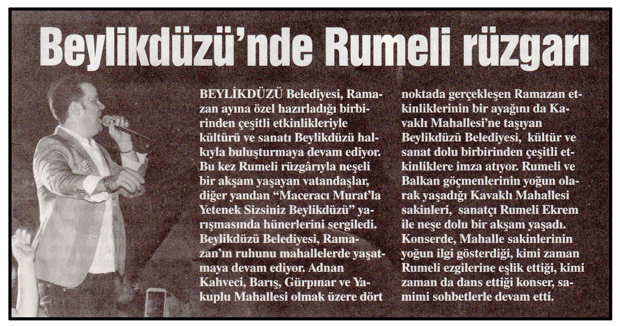16 Temmuz 2014 tarihli "YENİ GÜN" gazetesi. Beylikdüzü Belediyesi, Ramazan ayına özel hazırladığı birbirinden çeşitli etkinlikleriyle kültürü ve sanatı Beylikdüzü halkıyla buluşturmaya devam ediyor.