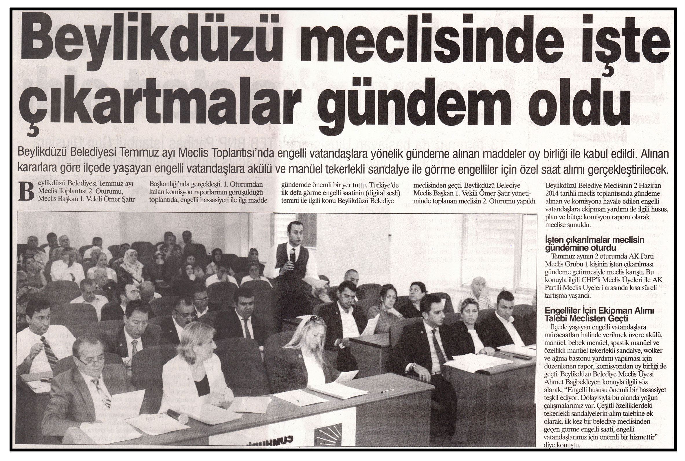 17 Temmuz 2014 tarihli "KENTHABER" gazetesi. Beylikdüzü Belediyesi Temmuz ayı Meclis Toplantısı'nda engelli vatandaşlara yönelik gündeme alınan maddeler oy birliği ile kabul edildi.