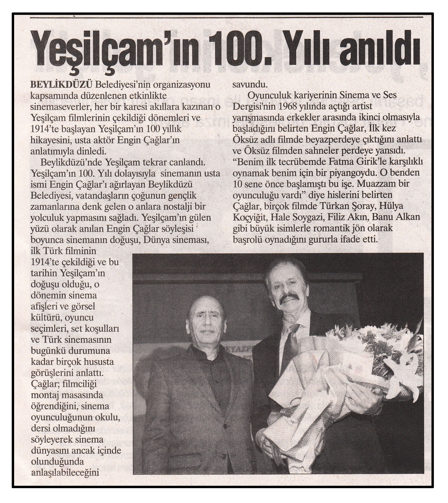 5 Kasım 2014 tarihli "MANŞET" gazetesi. Beylikdüzü Belediyei'nin organizasyonu kapsamında düzenlenen etkinlikte sinemaseverler, her bir karesi akıllara kazınan o Yeşilçam fimlerinin çekildiği dönemleri ve 1914'te başlayan Yeşilçam'ın 100 yıllık hikayesini, usta aktör Engin Çağlar'ın anlatımıyla dinledi.